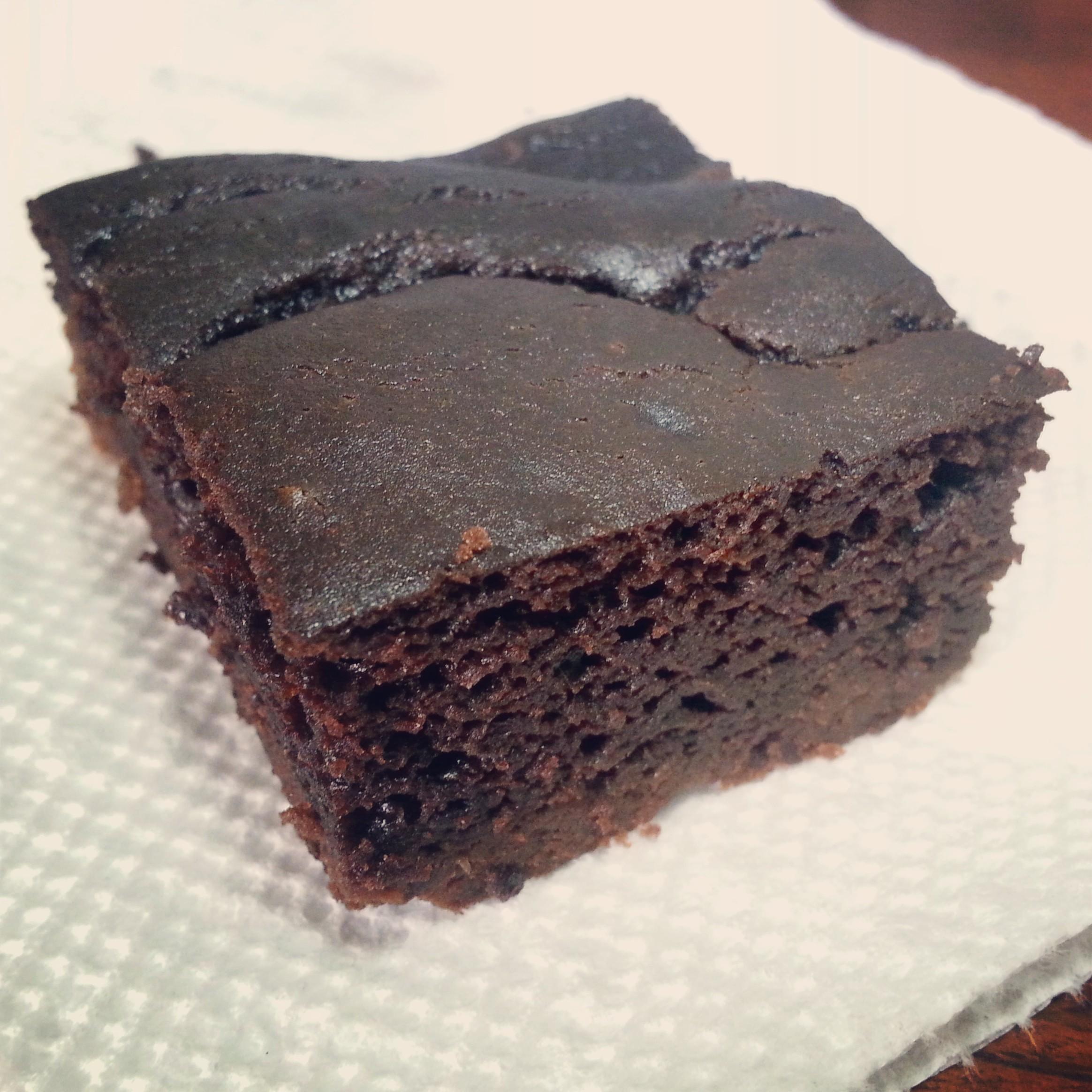 Mix ingredients together in a blender/food processor until pureed. Pour into a greased 8x8 cake pan. Stir in some chocolate chips and nuts, or leave plain. Bake at 350 F for approximately 30 minutes. Let cool completely before cutting.
