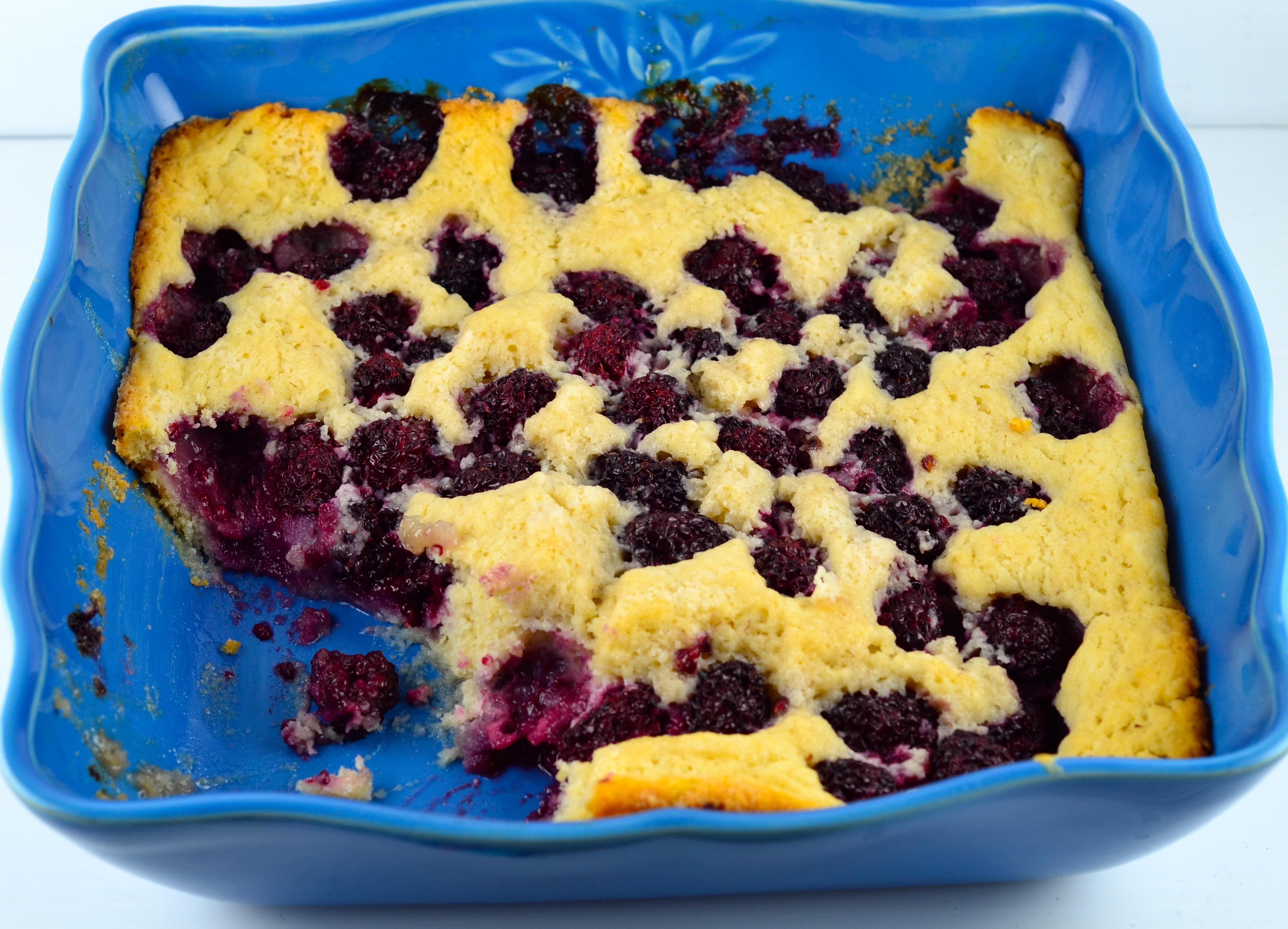 1 cup flour 2 teaspoons baking powder 1?2 teaspoon salt 1 cup milk 1?2 cup butter, melted 2 1?2 cups fresh blackberries 1?2 - 1 cup sugar (subjective ingredient so add according to your taste)