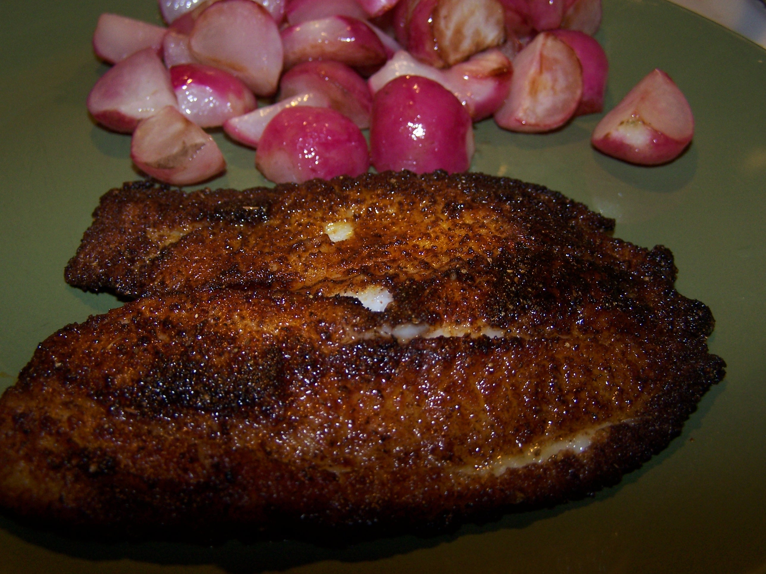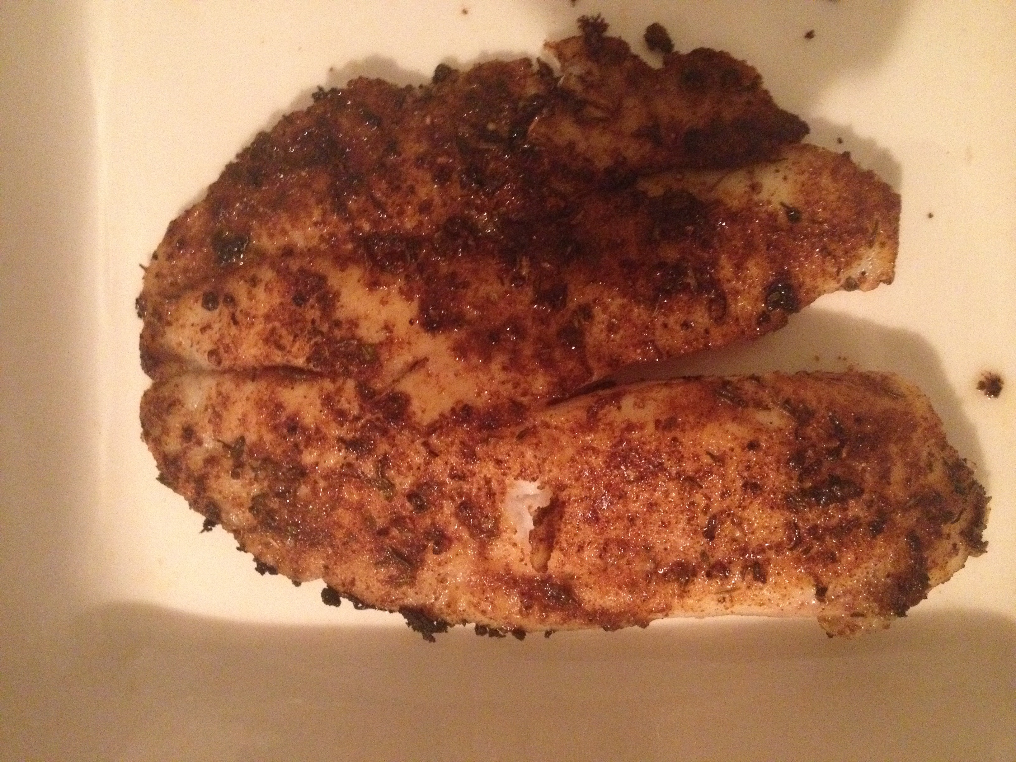 Coat the fish fillets with the spice mixture, and allow to sit at room temperature for no longer than 30 minutes. Over high heat, add oil to skillet, and heat until hot. Cook fillets for about 3 minutes per side, or until fish is opaque and can be flaked with a fork. Remove from the pan. Pour pan juices over them and squeeze lemon juice all over.