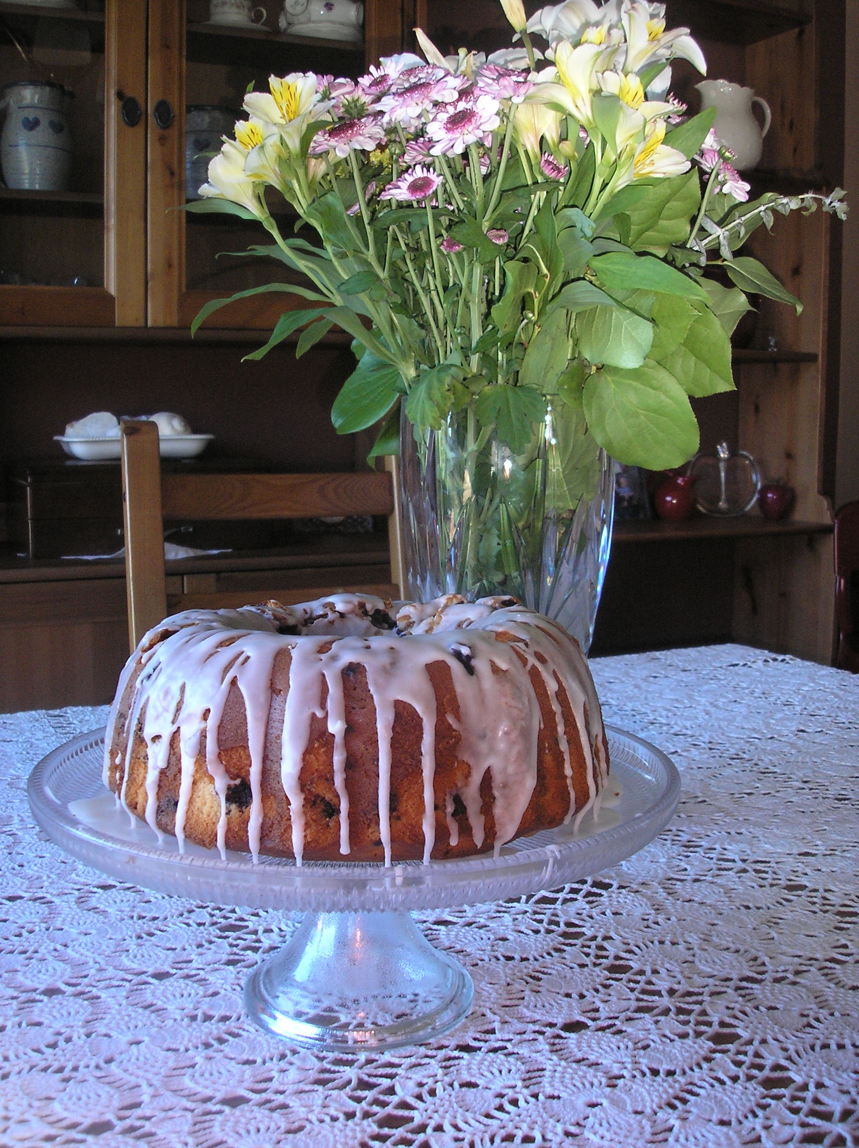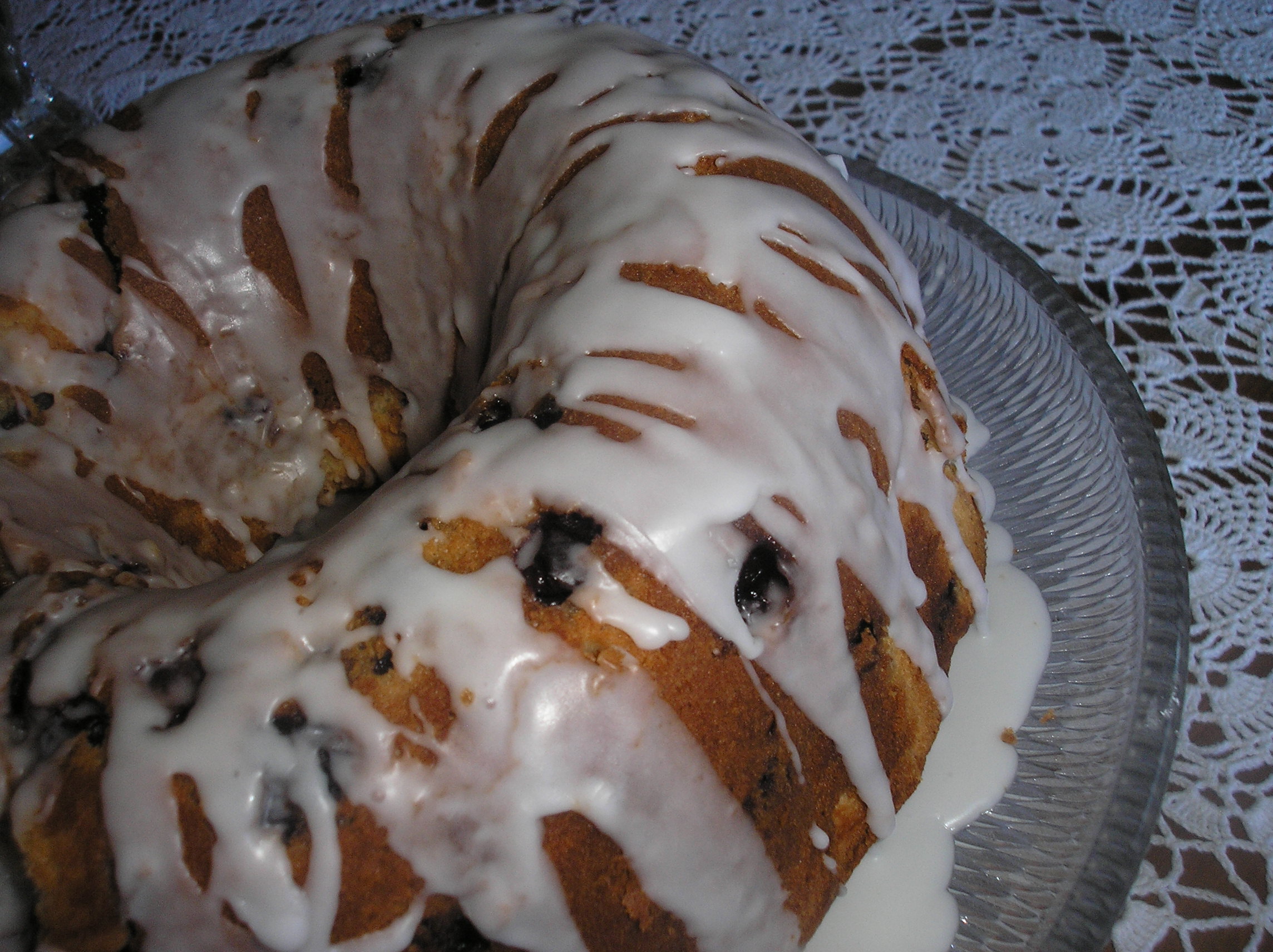 Preheat oven to 350 degrees. In a bowl, whisk 2 1/2 cups flour, baking powder and salt. Set aside. In another mixing bowl, cream butter, and both sugars on high, until light and fluffy. Add eggs, one at a time, beating until completely combined. Beat in vanilla. On low speed, alternate adding the flour mixture with the sour cream. In a separate bowl, toss blueberries, zest and remaining flour. Fold into batter. Grease and flour a 12 cup bundt pan. Spread batter into pan. Bake cake on bottom rack of oven for 60-70 minutes. Cool in pan for about 20 minutes, then invert onto rack. Cool completely. For the glaze, combine the juice of two lemons with 2-3 cups of icing sugar, until desired consistency has been reached. Drizzle glaze over cake. Enjoy!
