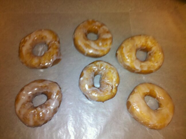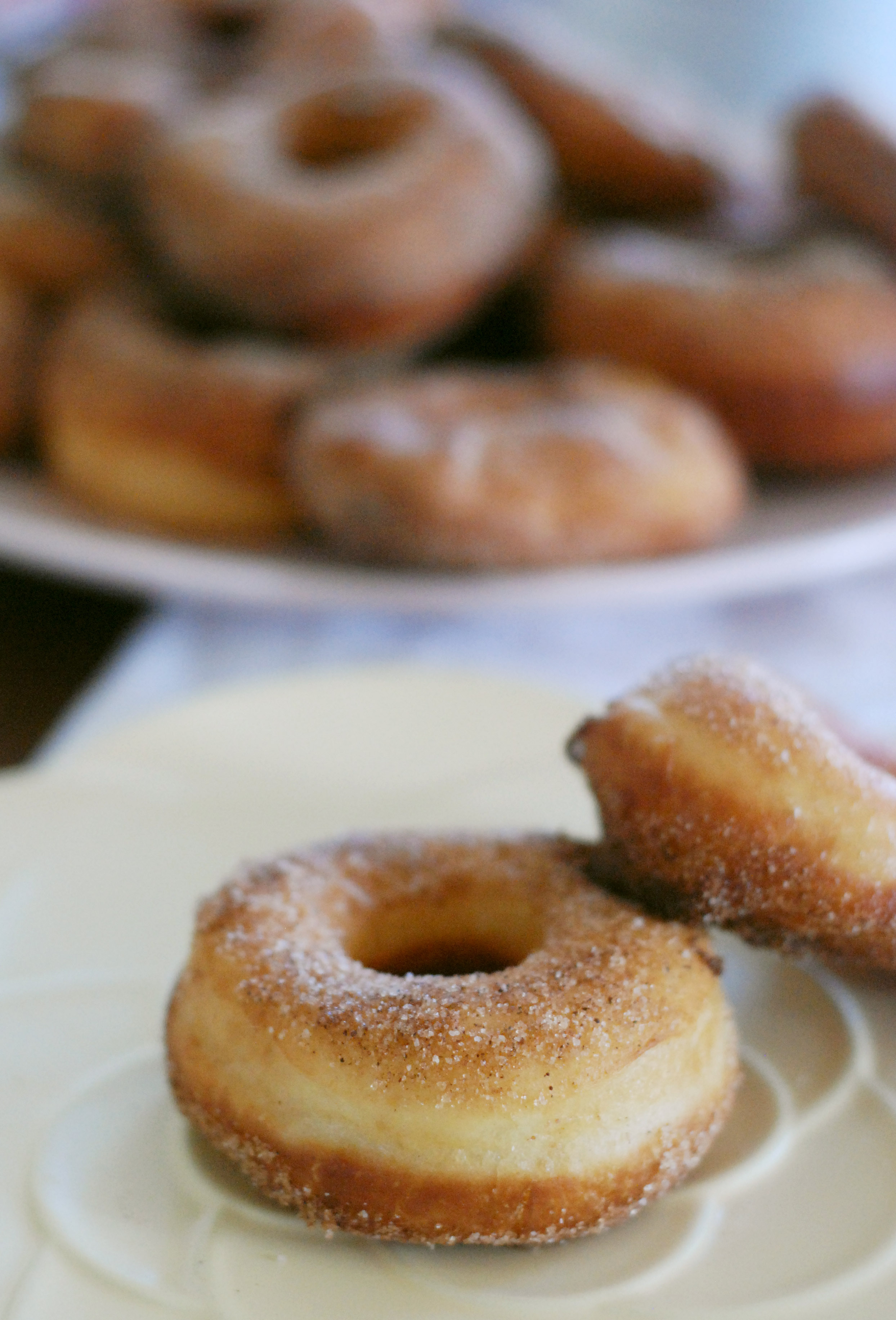 Measure ingredients into your ABM baking pan. Select dough setting and start machine. Roll finished dough to 1/2 inch thick. Cut with a 2-1/2 inch donut cutter. Let rise, covered, 30 minutes or until doubled. Deep fry in fat at 375 degrees. Turn doughnuts as they rise to the surface. Fry until brown on both sides. Drain on absorbent paper towels. Either glaze or dust with powdered sugar.