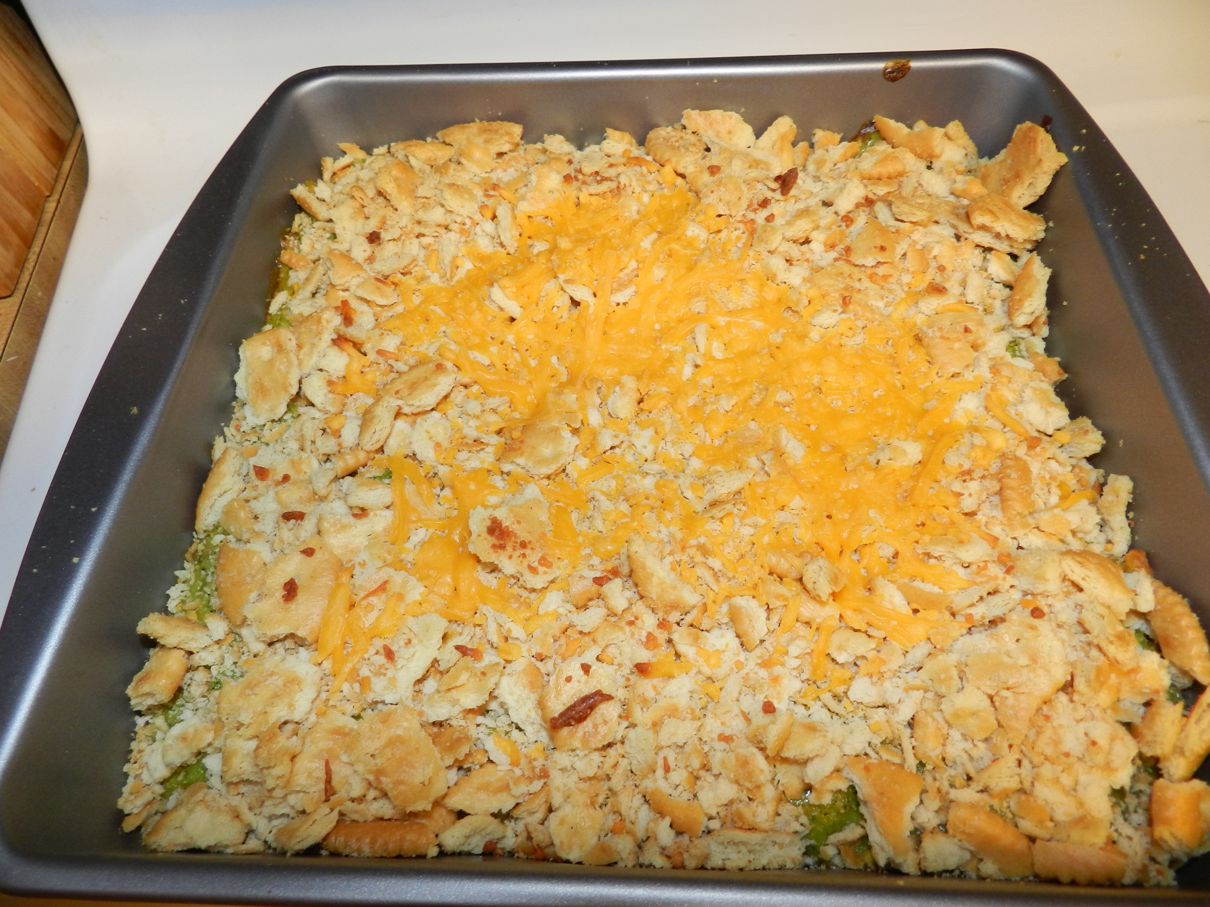 1 (16 ounce) bag frozen broccoli 1?2 a box of 16oz Ritz cracker 3?4 lb Velveeta cheese 1?2 cup butter