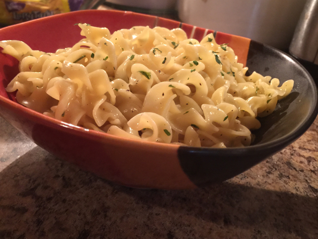 2 Wyler's chicken bouillon cubes 1 1?2 cups water 1?2 cup real butter 8 ounces egg noodles