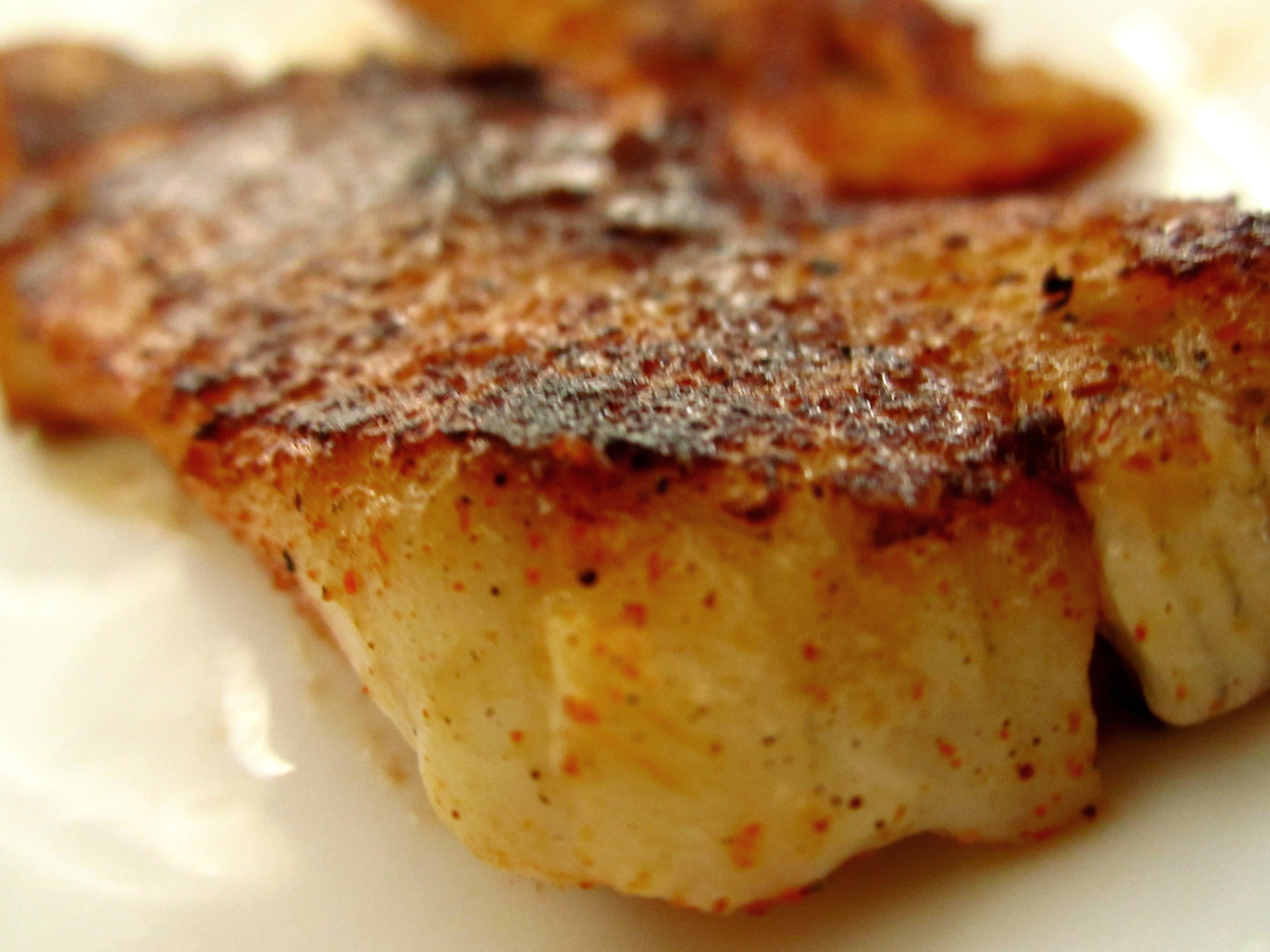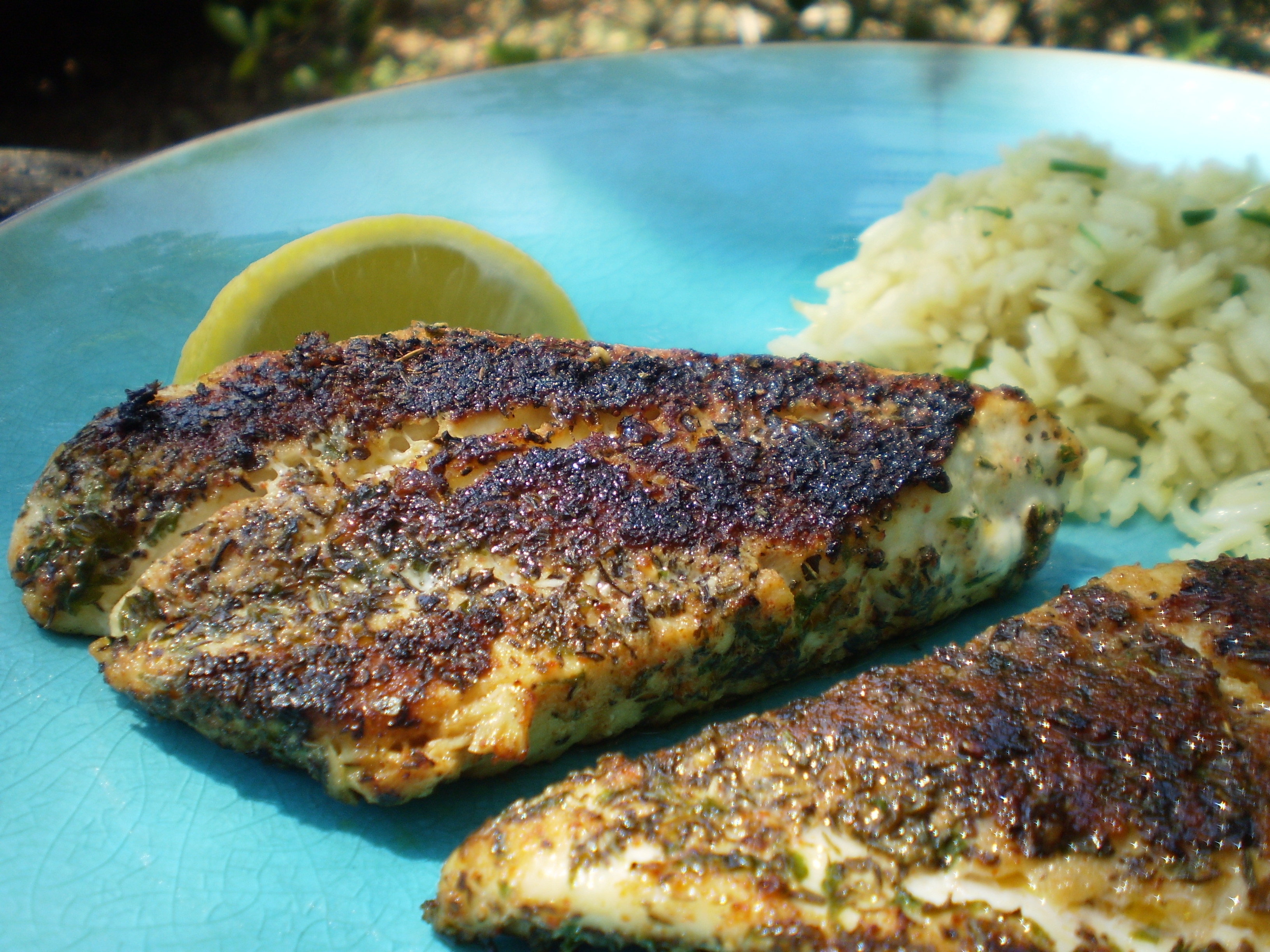 Combine all spices/dry ingredients in a bowl and mix well. Spread the spice mixture onto a flat plate. Press the fish fillets firmly into the spices, coating both sides. Heat the olive oil until almost smoking in a large heavy skillet. Cook the fish about 2 1/2 minutes on each side for fillets less than 3/4 inch thick. Increase time slightly for thicker fillets.