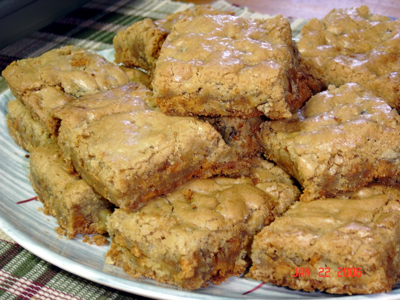 6 tablespoons shortening 1 1?2 cups brown sugar 2 eggs 1 1?2 teaspoons baking powder 1?2 teaspoon salt 1 teaspoon vanilla 1 1?2 cups flour 1?2 cup chopped nuts 1 cup butterscotch chips